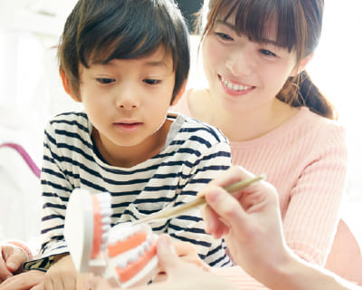 小さなお子さまのむし歯予防から、お母さんのお口の健康まで、親子で安心して通っていただけるよう、環境を整えています。お子さま連れでも気兼ねなくご来院いただけるよう、スタッフ一同、あたたかくサポートいたします。